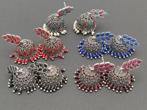 Leaf & Jhumka - Silver Lookalike Earring - Blue